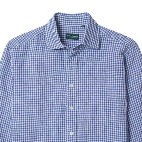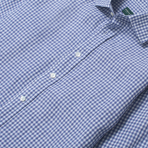 A fresh take on our perennial favourite, the Iris Blue Gingham is crisp and light. Cut for comfort with classic shirting details, featuring our soft semi spread collar, single button rounded cuffs, a gauntlet button, knife pleats, split Yoke back.