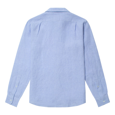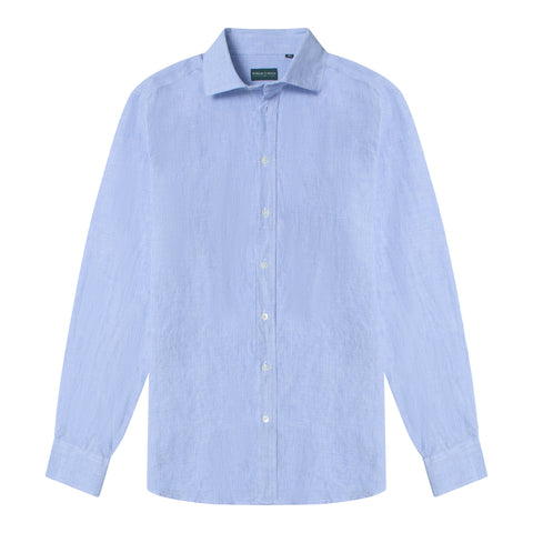 Our pure linen shirt features a soft semi spread collar, single button rounded cuffs, a gauntlet button, knife pleats and split Yoke back.