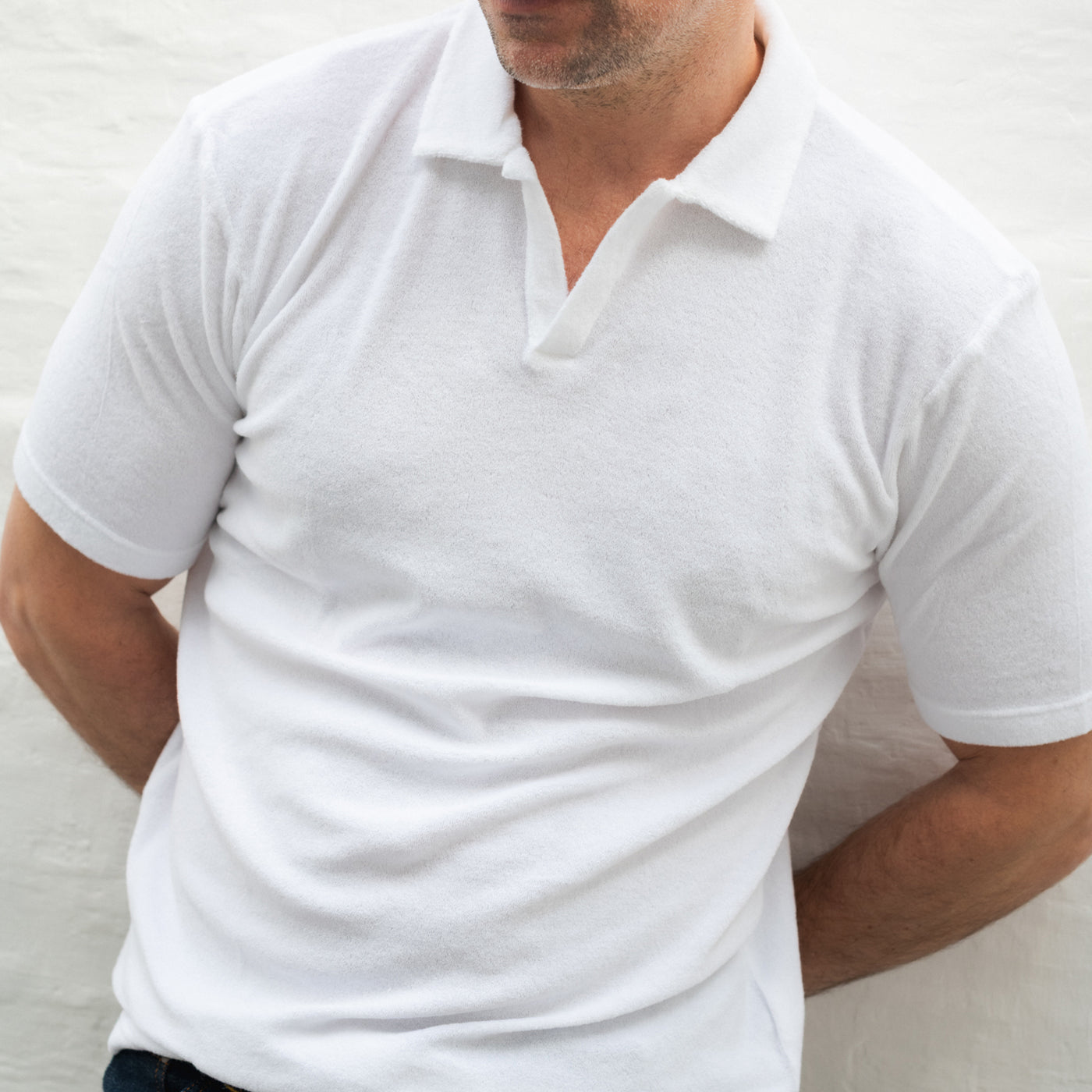 Made from a tactile Terry cotton fabric, this is an easy-going summer staple. Its open collar references mid-century Riviera style, while its lightweight, breathable fabric ensures it’ll work on the beach or in the bar.